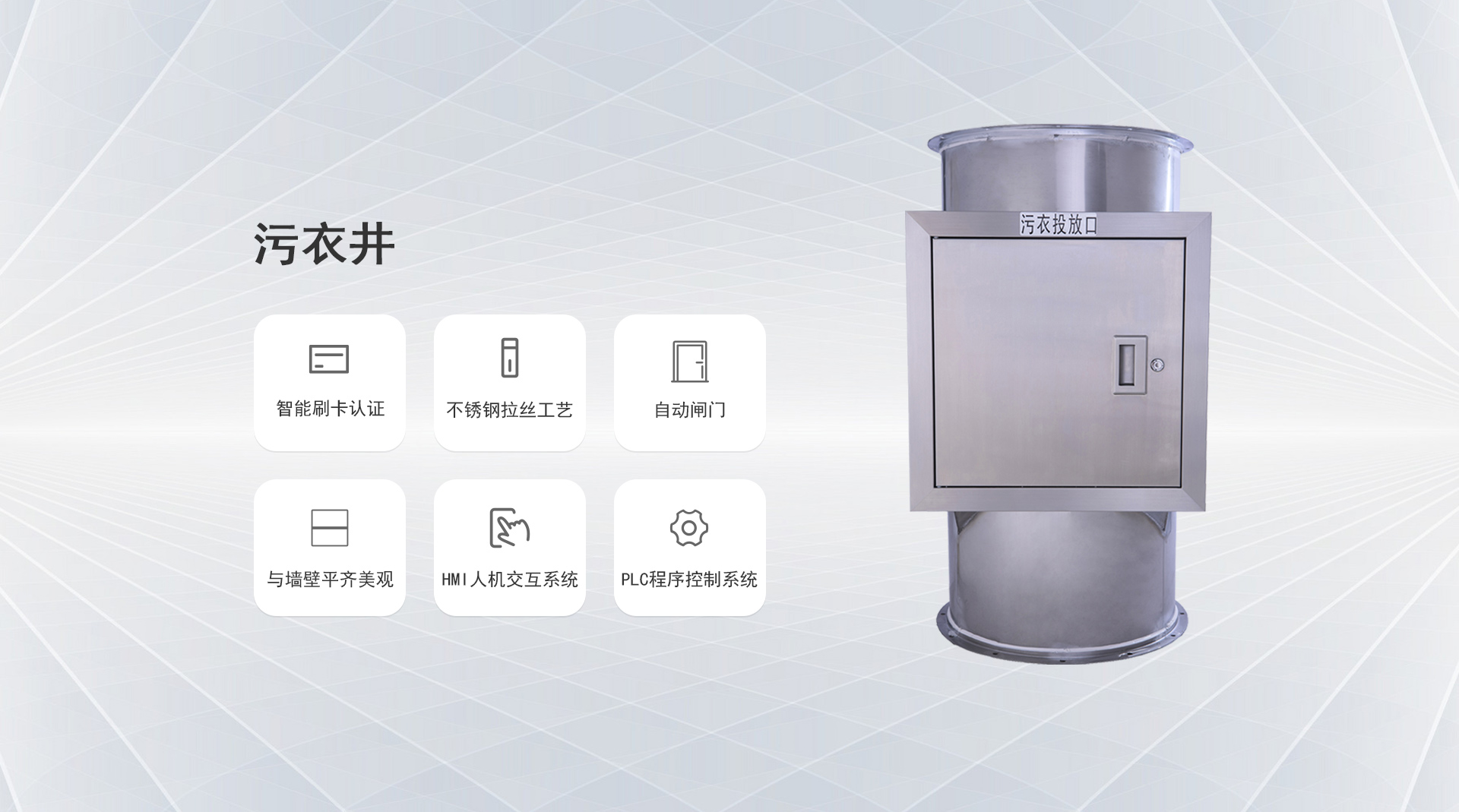 系統(tǒng)簡(jiǎn)介:1.污衣井是安裝在建筑內(nèi)部或者建筑外墻的304不銹鋼管道。高層建筑安裝污衣井后,人們可以直接從樓上投遞污衣到管道內(nèi)道內(nèi)...